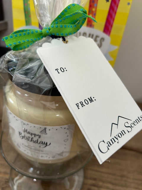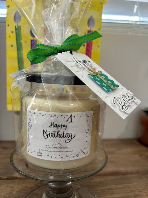 Wrapped in Cellophane with a card and bow! This Candle will surely give your special someone a gift perfect for their birthday! Our delicious birthday cake aroma will fill the home with the sweet smell of vanilla, butter, coconut, and brown sugar for a fresh-out-of-the-oven fragrance experience! NOTE: WHEN ORDERING - ENTER THE TO: AND FROM: In the Notes section before you check out. We'll wrap and ship for you to the shipping address you choose!