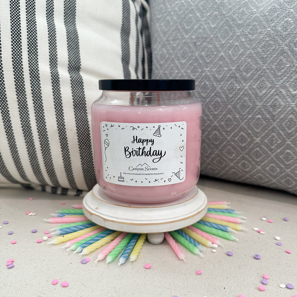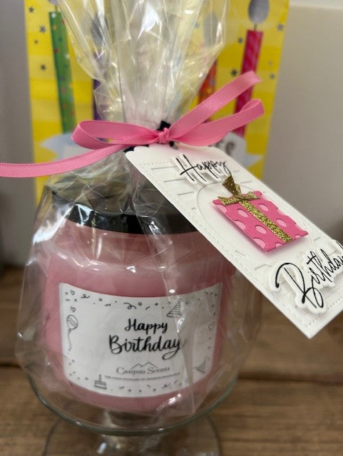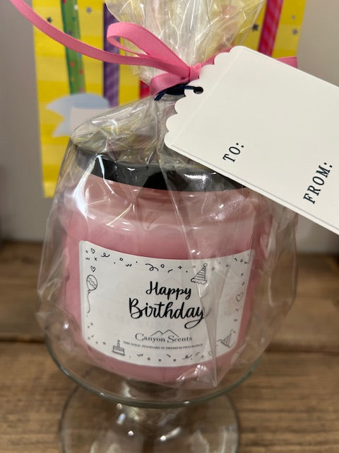 This beautifully wrapped candle, presented in cellophane with a Happy Birthday card and bow, makes for the perfect birthday gift for your special someone."