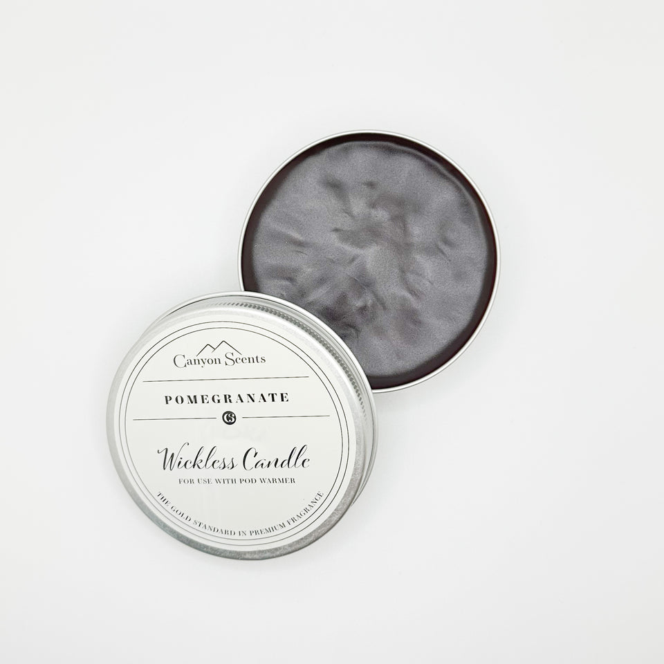 Pomegranate is now available in a 4 oz Wickless candle with approx. 30 hours burn time. To be used on the flat surface of a warmer. The sweet, juicy goodness of this exotic fruit and sweet vanilla is what makes our Pomegranate fragrance so tantalizing. Gold Canyon Pomegranate is a Classic.